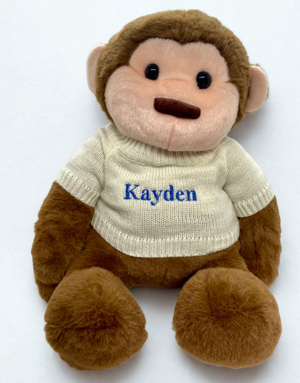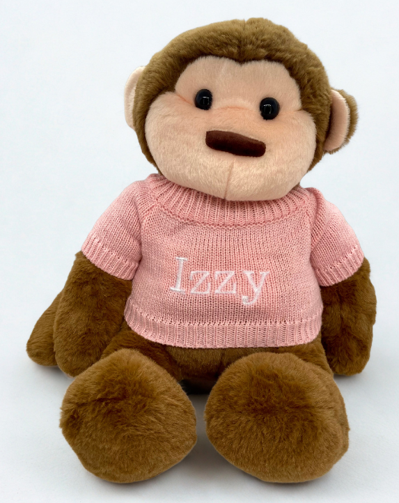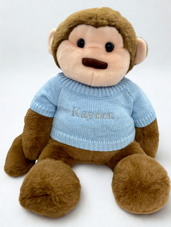 Make your monkey truly unique with an optional personalised knitted jumper. Add the name you would like in the order notes at checkout, along with your chosen thread colour. Perfect as a thoughtful gift or special keepsake.