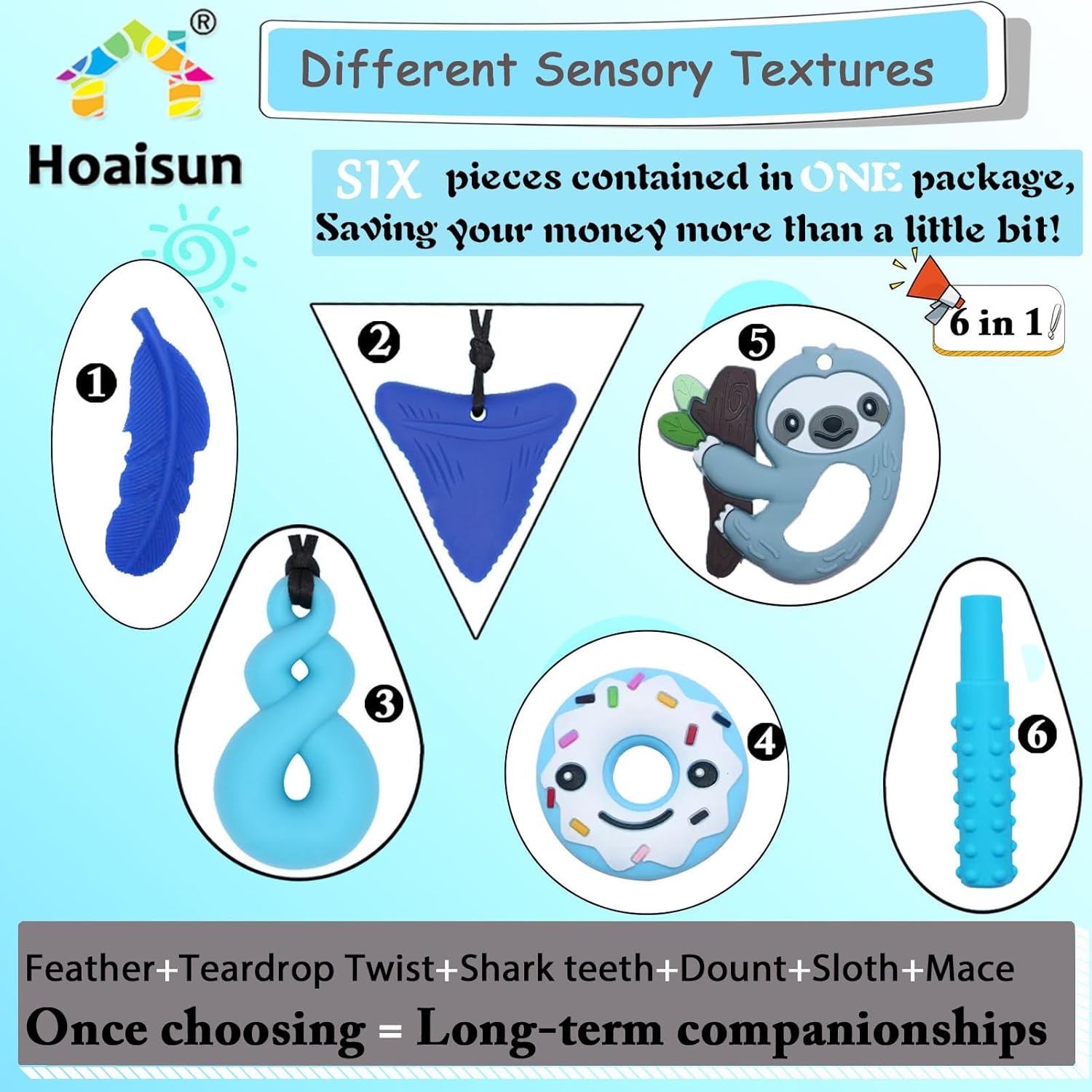 Find comfort and relief with this set of six Sensory Hugs’ various design Chew Necklaces! These innovative chew necklaces are designed to provide a safe and durable solution for individuals with autism, ADHD, anxiety, and special needs.